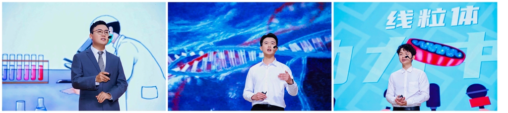 其中,帥文通以《點燃生命的曙光——異種器官移植》為題,從人們對“豬”的認(rèn)識切入,介紹為什么選擇豬作為研究對象、如何實現(xiàn)異種器官移植以及我國開展的異種器官移植案例。謝智峰《藥從何而來》從藥物的生產(chǎn)過程講起,揭示藥品研究“死亡之谷”的現(xiàn)實,從藥物研發(fā)角度介紹細胞譜系設(shè)施,引發(fā)了觀眾的強烈共鳴。杜賜杰圍繞“細胞的能量工廠:線粒體的奧秘和重要性”,帶領(lǐng)觀眾走近線粒體的微觀世界,并科普了“線粒體遇見”科研成果。選手們在講解過程中,不僅運用了清晰的邏輯、流暢的表達,還借助豐富的圖片、視頻等輔助手段,使講解更加直觀形象。