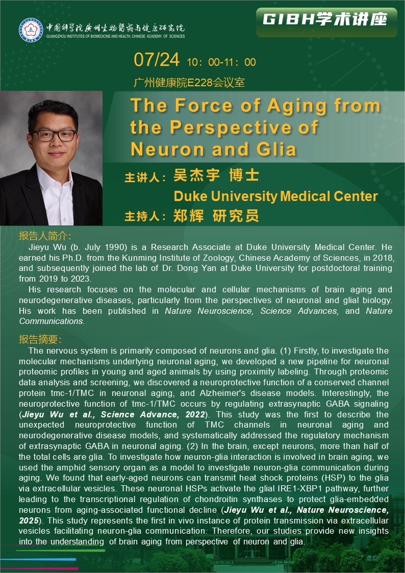 2025年7月24日學術(shù)講座: The Force of Aging from the Perspective of Neuron and Glia